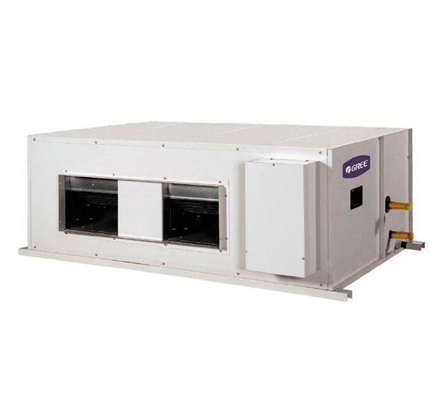 Описание Gree FGR60Pd/D(2)Na-MВысоконапорный канальный кондиционер Gree FGR60Pd/D(2)Na-M на 60 кВт серии Duct Inverter используется для охлаждения и обогрева больших складских помещений, супермаркетов, на производственных цехах и других объектах с площадью до 500 кв.м. Оснащен мощным инверторным компрессором и центробежным вентилятором с высоким статическим давлением. Подача воздуха с максимальным расходом 10800 м3/ч осуществляется по системе воздуховодов, которые размещаются либо за скрытым подвесным потолком, либо в отдельном техническом помещении. Большая протяженность межблочных фреоновых коммуникаций позволяет расположить внутренний и наружный блоки на расстояние до 50 метров друг от друга. Для работы используется хладагент R410A. Для контроля за работой установки используют проводной настенный пульт управления с широким набором функций и режимов, а именно:Охлаждение, обогрев, осушение и вентиляцияАвтоматическая смена режимаФункция СонТурбо режимОсушение теплообменникаАвторестартИндикация загрязнения фильтраЭнергосберегающий режимАвтоматическая разморозкаТаймерПодмесь свежего воздуха (опция)