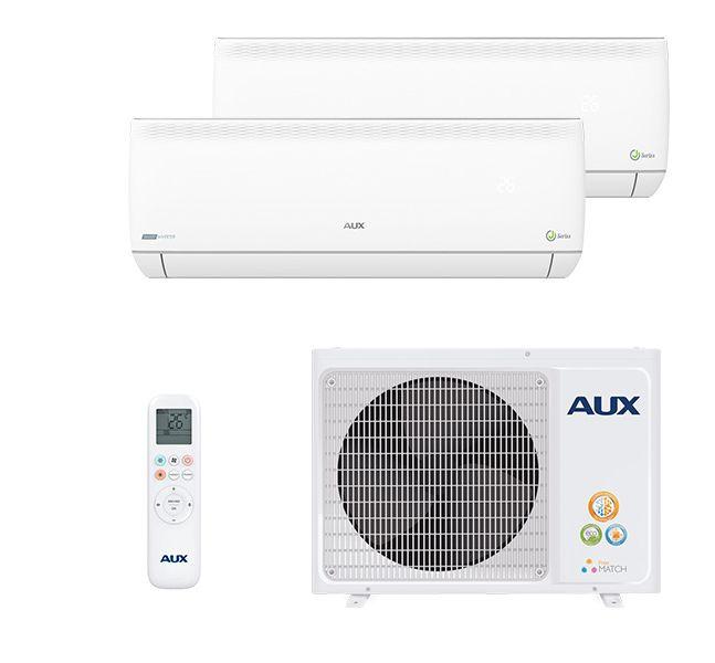 Описание AUX AMWM-H074R2(J) x 2 / AM2-H14/4DR1Индивидуальный микроклимат теперь стал ещё доступней благодаря инверторной мульти сплит системе AUX AMWM-H074R2(J) x 2 / AM2-H14/4DR1. Оба настенных блока подключаются к одному наружному блоку, который работает на безопасном и экономичном фреоне R410A. Широкий диапазон наружных температур позволяет включать кондиционер на обогрев до -15 градусов, а на охлаждение до -10. У каждого блока в комплекте свой пульт управления.Внутренние блоки AUX AMWM-H074R2(J)Поддерживать комфортную температуру в летнее или зимнее время года сразу в нескольких комнатах можно благодаря настенному блоку, который работает совместно с наружными блоками Free Match на R410A фреоне. Кондиционер имеет в свое комплекте беспроводной пульт с подсветкой и традиционный воздушный фильтр от пыли. Расширить возможности управления мульти сплит системы можно с помощью опционального Wi-Fi контроллера, и тогда контролировать климат в помещение можно с абсолютно любого места.Двустороннее подключение дренажаСкрытый LED дисплей4 основных режимовМинимальный уровень шума 24 ДбРежим по датчику в пульте I FeelАвтоматическая диагностика ошибокВстроенный таймер на 24 часаКомфортный ночной режимПерезапуск после отключения электричестваУправление по Wi-Fi (опция)Внешний блок AUX AM2-H14/4DR1Линейка внешних блоков мульти сплит системы AUX Free Match представлена 6 моделями с мощностью от 4 до 12 кВт. Встроенная шумоизоляция и усовершенствованный вентилятор с аэродинамическими свойствами позволили снизить уровень шума до комфортных пределов и уменьшить расходы на энергопотребление. Данная модель подходит для помещений с общей площадью до 40 м2.Компактная формаИнверторные технологииВысокий класс энергоэффективности А+Антикоррозийное покрытие теплообменникаМаксимальное количество подключаемых внутренних блоков — 2 шт.Возможность подключения блоков различного типаСтабильная работа при низкой наружной температуре от -15 С на обогрев и -10 С в режиме охлажденияДлина трубопровода до блока 25 м, перепад высот — 15 м, общая магистраль — 40 м.Огнебезопасный фреон R410AЗащита от замерзания, высокого и низкого давления, а так же от перегрузки компрессора
