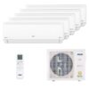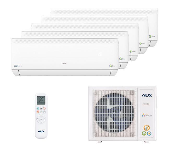 Описание AUX AMWM-H094R2(J) x 5 / AM5-H42/4DR1Индивидуальный микроклимат теперь стал ещё доступней благодаря инверторной мульти сплит системе AUX AMWM-H094R2(J) x 5 / AM5-H42/4DR1. Оба настенных блока подключаются к одному наружному блоку, который работает на безопасном и экономичном фреоне R410A. Широкий диапазон наружных температур позволяет включать кондиционер на обогрев до -15 градусов, а на охлаждение до -10. У каждого блока в комплекте свой пульт управления.Внутренние блоки AUX AMWM-H094R2(J)Поддерживать комфортную температуру в летнее или зимнее время года сразу в нескольких комнатах можно благодаря настенному блоку, который работает совместно с наружными блоками Free Match на R410A фреоне. Кондиционер имеет в свое комплекте беспроводной пульт с подсветкой и традиционный воздушный фильтр от пыли. Расширить возможности управления мульти сплит системы можно с помощью опционального Wi-Fi контроллера, и тогда контролировать климат в помещение можно с абсолютно любого места.Двустороннее подключение дренажаСкрытый LED дисплей4 основных режимовМинимальный уровень шума 24 ДбРежим по датчику в пульте I FeelАвтоматическая диагностика ошибокВстроенный таймер на 24 часаКомфортный ночной режимПерезапуск после отключения электричестваУправление по Wi-Fi (опция)Внешний блок AUX AM5-H42/4DR1Линейка внешних блоков мульти сплит системы AUX Free Match представлена 6 моделями с мощностью от 4 до 12 кВт. Встроенная шумоизоляция и усовершенствованный вентилятор с аэродинамическими свойствами позволили снизить уровень шума до комфортных пределов и уменьшить расходы на энергопотребление. Данная модель подходит для помещений с общей площадью до 120 м2.Компактная формаИнверторные технологииВысокий класс энергоэффективности А+Антикоррозийное покрытие теплообменникаМаксимальное количество подключаемых внутренних блоков — 5 шт.Возможность подключения блоков различного типаСтабильная работа при низкой наружной температуре от -15 С на обогрев и -15 С в режиме охлажденияДлина трубопровода до блока 35 м, перепад высот — 15 м, общая магистраль — 80 м.Огнебезопасный фреон R410AЗащита от замерзания, высокого и низкого давления, а так же от перегрузки компрессора