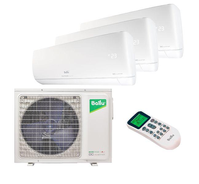 Описание Ballu BSUI-FM/in-07HN8/EU + BSUI-FM/in-09HN8/EU + BSUI-FM/in-12HN8/EU / BA3OI-FM/out-27HN8/EUИдеальный вариант для охлаждения и обогрева нескольких комнат одновременно – мульти сплит система на 3 комнаты Ballu BSUI-FM/in-07HN8/EU + BSUI-FM/in-09HN8/EU + BSUI-FM/in-12HN8/EU / BA3OI-FM/out-27HN8/EU. Подходит для площади до 82 кв.м. Каждый из кондиционеров управляется с помощью индивидуального беспроводного пульта. Настенные блоки выглядят очень стильно и выпускаются в двух цветах: белом и чёрном.Внутренние блоки Ballu BSUI-FM/in-07HN8/EU + BSUI-FM/in-09HN8/EU + BSUI-FM/in-12HN8/EUНезаменимое решение для квартиры или загородного дома – это мультисплит система из двух, трёх и более настенных блоков. Это новая модель 2022 года, которая представлен в двух цветах: белом и чёрном. Имеет низкий уровень шума от 21 дБа и регулируемые жалюзи с пульта.Два цвета внутреннего блокаТихая работа от 21 дБаШирокий модельный ряд от 2 до 7 кВтОбъёмный воздушный поток в 4 направленияхУправление по Wi-FiНаружный блок Ballu BA3OI-FM/out-27HN8/EUВ основе этого наружного блока используется надёжный инверторный компрессор от бренда Toshiba и работает он на фреоне нового поколения R32. Компрессорный блок Free Match ERP является основой для проектирования мульти сплит системы на 2, 3 и более комнат.Класс энергоэффективности А++/А+Безопасный и экономичныйИнверторный компрессор ToshibaМаксимальное количество подключаемых блоков – 3Обогрев до -20 C и охлаждение до -10 C