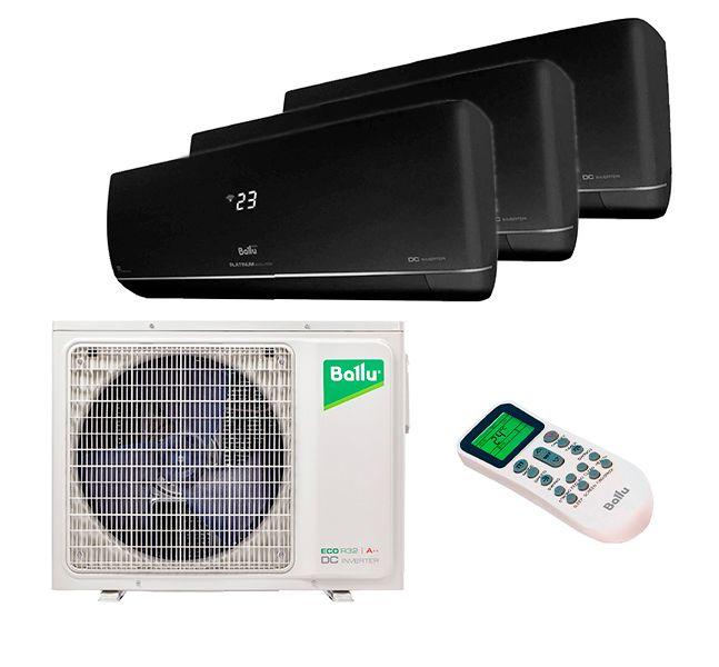 Описание Ballu BSUI-FM/in-09HN8/EU_BL x 3 / BA3OI-FM/out-27HN8/EUИдеальный вариант для охлаждения и обогрева нескольких комнат одновременно – мульти сплит система на 3 комнаты Ballu BSUI-FM/in-09HN8/EU_BL x 3 / BA3OI-FM/out-27HN8/EU. Подходит для площади до 78 кв.м. Каждый из кондиционеров управляется с помощью индивидуального беспроводного пульта. Настенные блоки выглядят очень стильно и выпускаются в двух цветах: белом и чёрном.Внутренние блоки Ballu BSUI-FM/in-09HN8/EU_BLНезаменимое решение для квартиры или загородного дома – это мультисплит система из двух, трёх и более настенных блоков. Это новая модель 2022 года, которая представлен в двух цветах: белом и чёрном. Имеет низкий уровень шума от 21 дБа и регулируемые жалюзи с пульта.Два цвета внутреннего блокаТихая работа от 21 дБаШирокий модельный ряд от 2 до 7 кВтОбъёмный воздушный поток в 4 направленияхУправление по Wi-FiНаружный блок Ballu BA3OI-FM/out-27HN8/EUВ основе этого наружного блока используется надёжный инверторный компрессор от бренда Toshiba и работает он на фреоне нового поколения R32. Компрессорный блок Free Match ERP является основой для проектирования мульти сплит системы на 2, 3 и более комнат.Класс энергоэффективности А++/А+Безопасный и экономичныйИнверторный компрессор ToshibaМаксимальное количество подключаемых блоков – 3Обогрев до -20 C и охлаждение до -10 C