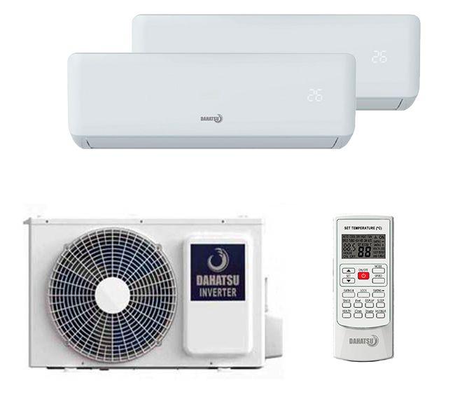 Описание Dahatsu DHMULT-07 х 2 / DHMULT-18/2Мульти сплит система для 2 комнат с одним наружным блоком DHMULT-18/2 и двумя внутренними блоками DHMULT-07. Суммарная площадь помещений до 40 кв.м.Внутренний блок Dahatsu DHMULT07Компактная модель рассчитана на комнату до 20 м2. Имеет систему горизонтальных и вертикальных жалюзи, которые в режиме покачивания и автоматического движения горизонтальных заслонок создают объемный поток воздуха, направленный во все уголки помещения. Низкий уровень шума позволит установить такой кондиционер в комнате с особыми требованиями к тишине. Внутренние блок подключается к наружному блоку мульти сплит системы Dahatsu соответствующей мощности.Инверторное управлениеУменьшенные шумовые характеристики от 24 дБРежим осушения без значительных изменений температуры воздухаФункция I Feel установить комфортный режим в месте нахождения пульта по встроенному температурному датчику.Режим комфортного сна с плавным изменением температуры на протяжении 7 часов.LED дисплейТаймер вкл./выкл.Антибактериальный фильтр в комплектеКомпактные габариты и малый весПульт ДУНаружный блок Dahatsu DHMULT 18/2В основе инверторный компрессор от Тошиба нового поколения. Улучшенный теплообмен с новой конструкцией медных труб с внутренним оребрением и многосекционного испарителя с увеличенной поверхностью. Режим самодиагностики проверит правильное соединение между наружным и внутренними блоками, а так же отследит любое нештатное состояние системы в процессе эксплуатации.Высокоэнергоэффективный класс А++Компрессор Toshiba — настоящее японское качество!Устойчивый к перепадам напряжения от 185-255 VАвтозапуск системы при возобновлении подачи питания в энергосетиЗащитна соединительный патрубков при транспортировкеМаксимальная длина трассы до 40 мГарантированный диапазон рабочих температур до -15 С на холод и до -15 С на тепло.