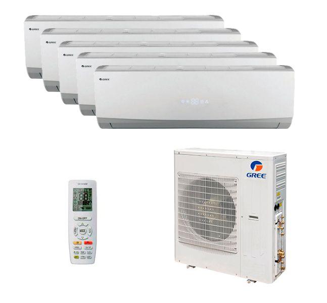 Описание Gree GWH09QCXB-K6DNC2F/I x 5 / GWHD(42)NK6LO(LC)(LH)Свободная комплектация внутренних блоков с один наружным блоком позволяет достичь наиболее оптимального микроклимата сразу в нескольких комнатах. Поэтому представляем вам обновленную версию мульти сплит системы на 5 комнаты Gree GWH09QCXB-K6DNC2F/I x 5 / GWHD(42)NK6LO(LC)(LH) из серии Lomo на R32 фреоне. Данный комплект включает 5 настенных блоков, рассчитанные на площадь до 27 + 27 + 27 + 27 + 27 кв.м.Настенные блоки Gree GWH09QCXB-K6DNC2F/IБлагодаря автоматической работе горизонтальных жалюзи можно выбрать оптимальную скорость воздушного потока и обеспечить максимальный комфорт даже в самом удаленном уголке комнаты. Настенный блок сочетается с наружными блоками на R32 фреоне из серии Free Match R32. Для управления используется беспроводной ИК пульт, который входит в комплект.Функция Теплый стартСистема автоматической очисткиТаймер на 24 часаВоздушный механический фильтрВстроенное Wi-Fi управлениеПроводной пульт (опция)Наружный блок Gree GWHD(42)NK6LO(LC)(LH)Благоприятный микроклимат и летом и зимой теперь доступен благодаря инверторному наружному блоку Free Match IV R32. Его используют в мультисплит системе, которая рассчитана до 5 внутренних блоков. Это могут быть как блоки настенного, так и консольного, канального и кассетного типов.Фреон нового поколения R32Низкотемпературный комплект охлаждения и обогреваИнтеллектуальная автоматическая разморозкаКомпактный форм-факторКомплексная защитаВысокая производительностьШирокий диапазон напряжения