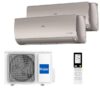 Описание Haier AS25S2SF2FA-G x 2 / 2U50S2SM1FA-3Элегантная, стильная и супер тихая мультисплит система на 2 комнаты Haier AS25S2SF2FA-G x 2 / 2U50S2SM1FA-3 из серии Flexis. Оба внутренних блока подключены к одному наружному блоку. Работают на новом фреоне R32 и имеют очень низкие параметры шума от 16 дБа. Для площади до 50 кв.м.Настенный блок Haier AS25S2SF2FA-GДанные модели кондиционеров представлены в 3 разных цветах: белом, золотистом и черном. Отличаются уникальной технологией очистки воздуха, которая включает следующее:УФ лампу для обеззараживания от вирусов и бактерий;Фотокаталитический и угольный фильтры.Кроме этого, предусмотрена функция самоочистки внутреннего блока, позволяющая очистить теплообменник от пыли и грязи, и функция Steri Clean нагревающая испаритель до температуры +56 C, с помощью которой 99% бактерий и вирусов погибают на его поверхности. Все элементы корпуса и теплообменник имеют дополнительное покрытие нано-ионами серебра для предотвращения образования плесени и грибка внутри блока.Ночной режим3D воздушный потокДлина струи до 12 мКомфортный режим Intelligent AirАвтоматический режимИнтенсивный режим PowerАвторестартИнтеллектуальный экодатчик Eco SensorWi-Fi управлениеДежурный режим +10 С при обогревеТаймер5 скоростей вентилятораПростой быстрый монтажСамодиагностикаСкрытый LED-дисплейВнешний блок Haier 2U50S2SM1FA-3Инверторный наружный блок Super Match предназначен для подключения до 2 внутренних блоков с одинаковой или различной мощностью. Присоединять можно как традиционные настенные, так и другие типы блоков кассетные, канальные или напольные. Оснащен мощным компрессором Hitachi.Высокий класс сезонной энергоэффективности А++/А+Широкий диапазон работы от -15 до 24 на обогрев, от -10 до +43 на холодСуммарная длина трассы до 30 метровМалошумный вентиляторЗаправка фреона даже в зимнее времяПростой доступ к сервисной панелиИнтервал рабочего напряжения от 208 до 240 VУпрощенное электроподключение