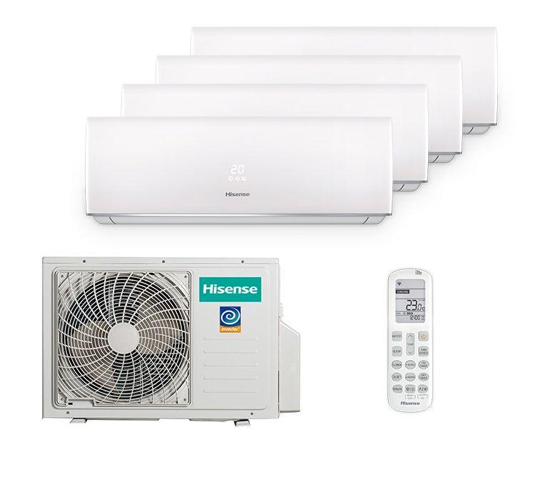 Описание Hisense AMS-07UW4RVEDB00H x 4 / AMW4-27U4RJCЕсть ограничения по установке наружного блока? Или необходимо подобрать кондиционер сразу для двух комнат? Тогда наиболее оптимальным вариантом станет мульти сплит система Hisense AMS-07UW4RVEDB00H x 4 / AMW4-27U4RJC. Все сплит-системы будут работать в одном из установленных режимов охлаждения или обогрева, а уже температуру в каждом из помещений вы устанавливаете индивидуально.Настенные блоки Hisense AMS-07UW4RVEDB00HПопулярная серия инверторных мульти сплит систем Smart теперь стала ещё экономичней и работает совместно с наружными блоками на R32 фреоне. Лаконичный и компактный дизайн настенного блока будет идеально сочетать в любом интерьере, а с помощью дополнительного Wi-Fi модуля пользователь сможет управлять удаленно через телефон.Благодаря электроприводу вертикальных и горизонтальных жалюзи управлять воздушным потоком стало еще проще. Горизонтальные заслонки можно зафиксировать в определенном положении для более точечного обдува или же настроить их в режиме непрерывного покачивания. Все эти функции можно изменять с помощью кнопок на пульте.В качестве очистки воздуха применяются следующие фильтры:UHD – фильтр удаляет до 90% пыли и прочих загрязненийФотокаталитический фильтр эффективно борется с неприятными химическим запахамиИонный фильтр Silver Ion нейтрализует бактерии и вирусыФункции и режимы:Подключение Wi-Fi модуля для удаленного управленияУправление вертикальными и горизонтальными жалюзиВозможность централизованного управления через проводной контроллер (опция)Установка микроклимата по таймеруРежим сниженного шума OuietУправление температурой по датчику в пульте в режиме I feelОтключение подсветки дисплея на внутреннем блокеКомфортные условия для СнаДежурный обогрев в период вашего отсутствия +8 градусовСпециальный настенный держатель для пульта в комплектеВнешний блок Hisense AMW4-27U4RJCОсновным преимуществом мульти сплитсистемы является тот фактор, что для установки вам понадобиться все один наружный блок. К нему можно подключать как обычные настенные блоки, так и блоки консольного, канального или кассетного типа. Эта модель имеет исключительно высокий уровень энергоэффективности класса А++, работает на озонобезопасном фреоне R32 вплоть до -20 градусов в режиме обогрева. Серия Free Match DC inverter R32 совместима только с внутренними блоками на R32 хладагенте.Надежная двойная шумоизоляцияМаксимально число подключаемых блоков – 4 шт.Работает от сети с напряжением 230ВСуммарная длина трассы до 60 мОхлаждение до -15 C, обогрев до -20 C