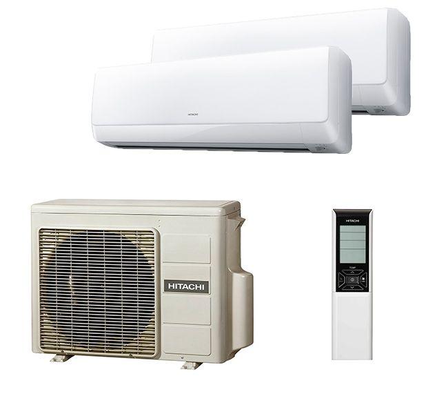 Описание Hitachi RAK-25RXE x 2 / RAM-40NP2EСовременный многофункциональный комплект Hitachi RAK-25RXE x 2 / RAM-40NP2E состоит из двух настенных блоков в комбинации с 1 наружным блоком из серии Multizone Premium. Подходит для общей площади до 50 кв.м. Каждый внутренний блок имеет свой пульт управления с недельным таймером.Внутренний блок Hitachi RAK-25RXEИзысканный дизайн настенного блока Akebono станет прекрасным дополнение в любом интерьере. Фронтальную панель украшает вставка из матового стекла. В качестве очистительных фильтров используется новый воздушный фильтр из нержавеющей стали, а также фильтры тонкой очистки HEPA и Active Carbon.Подключаются к наружным блокам Multizone PremiumБесшумная работа от 20 дБАвтопривод вертикальных и горизонтальных жалюзиЕсть встроенный сенсор движенияТаймер включения и выключенияПульт с недельным таймеромНаружный блок Hitachi RAM-40NP2EВысокоточные инверторные технологии позволили создать мощный и в тоже время экономичный внешний блок премиального класса. Используется в составе мульти сплит системы на 2 комнаты. К одному такому блоку можно подключать не только настенные кондиционеры, но и блоки канального, кассетного и напольного типов.Сезонная энергоэффективность А+++/А++Максимальное количество подключаемых блоков – 2Минимум вибраций и шумаГибкая система подключенияДлина фреонопровода до 35 метровЭкологичный и безопасный хладагент R32Обогрев до -15°C на улицеОхлаждение до -10°C