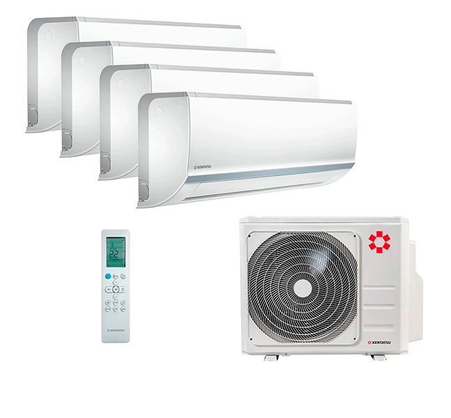 Описание Kentatsu KSGY26HZRN1 x 4 / K4MRA80HZRN1На сегодняшний день использование мультисплит системы является одним из самых востребованных способов кондиционирования нескольких помещений. Так например, комплект на четыре комнаты Kentatsu KSGY26HZRN1 x 4 / K4MRA80HZRN1 идеально подойдет для площади до 104 (26+26+26+26) м2. Для управления и установки температуры в комплект входит беспроводной пульт, он предусмотрен для каждого внутреннего блока отдельно.Внутренний блок Кентатсу KSGY26HZRN1Отличается презентабельным внешним видом, низким шумом 20 дБ и удобной съемной лицевой панелью с LED дисплеем. Оснащен фильтром повышенной плотности от пыли, а так же дополнительными фильтрами тонкой очистки.Режим повышенной мощностиАвтоматическая работа жалюзиФункция Горячий пускМногоступенчатая регулировка скоростиОсушениеЛокальный микроклимат по датчику в пультеОтключение звука и подсветки на блокеКомфортный сонДежурный обогрев +8CАвтоматическая самоочисткаСамодиагностикаОбнаружение утечки хладагентаТаймер на 24 часаДвусторонний дренажНаружный блок Кентатсу K4MRA80HZRN1Гарантирует стабильную работу в режиме охлаждения и обогрева до -15 C. Технология самодиагностики обеспечивает защиту и дополнительную проверку на корректность работы кондиционера.Подключение до 4 внутренних блоковИнверторные технологииОгнебезопасный фреон R32Защита от перепадов напряженияАнтикоррозийное покрытие корпусаТеплообменник Golden FinАвтоматический выбор режимаПерезапуск после сбоя в сетиМаксимальная длина фреонопровода 80 м
