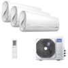 Описание Midea MSFA2-09N8D6-I x 3 / M3OG-21HFN8-Q1Когда нет возможности установить несколько наружных блоков на фасаде здания или место для этого очень ограничено – мульти сплит система Midea MSFA1-09N8D6-I x 3 / M3OG-21HFN8-Q станет самым оптимальным вариантом для такого монтажа. Здесь используется всего один наружный блок и три настенных внутренних блока из премиальной серии Breezeless.Внутренний блок Midea MSFA-09N8D6-IУникальная технология распределения воздушного потока на 360 Breezeless обеспечивает комфортную прохладу и бесшумную работу кондиционера в течение всего дня. Внутренний блок мульти сплит системы имеет особую конструкцию подвижных двойных дефлекторов и более 7 тысяч мини-отверстий для равномерного рассеивания воздуха. Подача воздуха осуществляется так же через боковые S-образные отверстия на блоке.Совместимость с внешними блоками на R32 фреонеПлавная регулировка вертикальных и горизонтальных жалюзиЭнергосберегающий режим iEcoМинимальный уровень шума от 19 дБаФильтр повышенной плотности от пылиКомбинированный и HEPA фильтрыДежурный обогрев до +8 °CФункция самоочисткиСтерилизация при +56 °CРежим Follow MeСон, Турбо, таймерWi-Fi опцияНаружный блок Midea M3OF-21HFN8-QСочетает в себе самые последние высокоточные и эффективные разработки, а именно технологию полного инверторного управления Full DC Inverter и хладагент R32. Функция энергосбережение iEco обеспечивает максимальный комфорт в помещение, сокращая при это потребление электроэнергии на 70% благодаря уникальным алгоритмам. Новое антикоррозийное покрытие теплообменника PrimeGuard гарантирует стабильную работу и долгий срок службы, надежно защищая металлические ребра от коррозии и окисления.Вариативность монтажаПодключение до 3 внутренних блоковОбогрев и охлаждение до -15 CДлина трассы до 60 метровПерепад высоты до 15 м