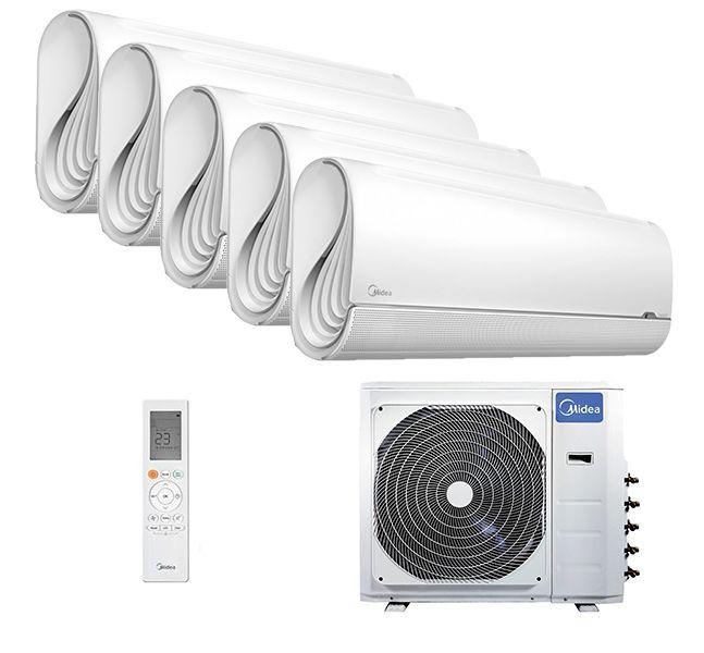 Описание Midea MSFA2-09N8D6-I x 5 / M5OE-42HFN8-Q1Когда нет возможности установить несколько наружных блоков на фасаде здания или место для этого очень ограничено – мульти сплит система Midea MSFA1-09N8D6-I x 5 / M5OE-42HFN8-Q станет самым оптимальным вариантом для такого монтажа. Здесь используется всего один наружный блок и пять настенных внутренных блоков из премиальной серии Breezeless.Внутренний блок Midea MSFA-09N8D6-IУникальная технология распределения воздушного потока на 360 Breezeless обеспечивает комфортную прохладу и бесшумную работу кондиционера в течение всего дня. Внутренний блок мульти сплит системы имеет особую конструкцию подвижных двойных дефлекторов и более 7 тысяч мини-отверстий для равномерного рассеивания воздуха. Подача воздуха осуществляется так же через боковые S-образные отверстия на блоке.Совместимость с внешними блоками на R32 фреонеПлавная регулировка вертикальных и горизонтальных жалюзиЭнергосберегающий режим iEcoМинимальный уровень шума от 19 дБаФильтр повышенной плотности от пылиКомбинированный и HEPA фильтрыДежурный обогрев до +8 °CФункция самоочисткиСтерилизация при +56 °CРежим Follow MeСон, Турбо, таймерWi-Fi опцияНаружный блок Midea M5OD-42HFN8-QСочетает в себе самые последние высокоточные и эффективные разработки, а именно технологию полного инверторного управления Full DC Inverter и хладагент R32. Функция энергосбережение iEco обеспечивает максимальный комфорт в помещение, сокращая при это потребление электроэнергии на 70% благодаря уникальным алгоритмам. Новое антикоррозийное покрытие теплообменника PrimeGuard гарантирует стабильную работу и долгий срок службы, надежно защищая металлические ребра от коррозии и окисления.Вариативность монтажаПодключение до 5 внутренних блоковОбогрев и охлаждение до -15 CДлина трассы до 80 метровПерепад высоты до 15 м